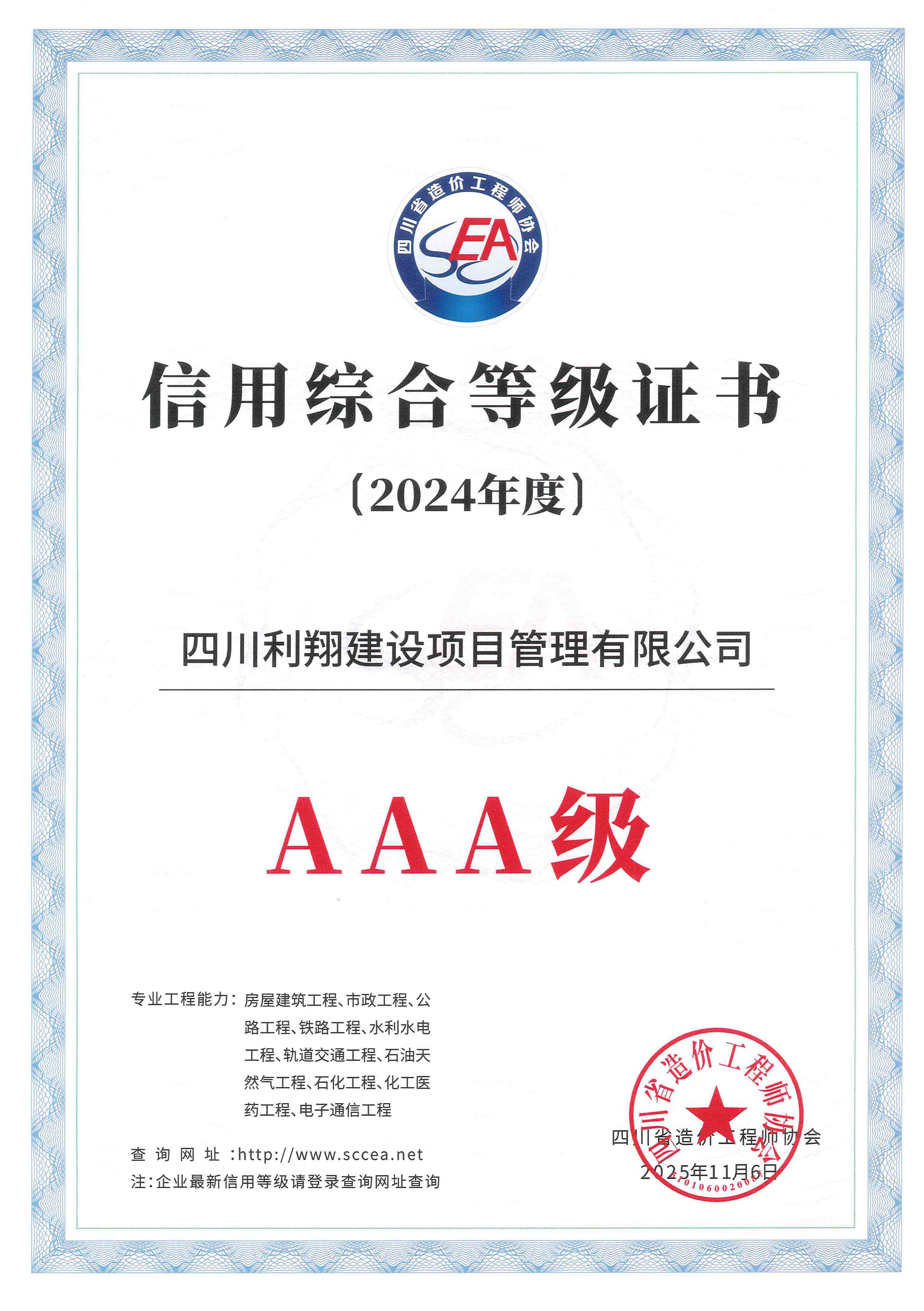 利翔咨询自创立以来,始终秉承专业高效、攻坚克难、创新超越的宗旨,构建了一支由注册造价师、注册监理工程师、注册咨询师、注册建造师、注册会计师等组成的严谨、科学、专业、专注的咨询团队和专业全面、经验丰富的专家团队。业务领域遍布10余个省、市自治区,涵盖了全过程工程咨询、工程咨询、工程造价咨询、招标代理、工程监理、BIM咨询、新基建、司法鉴定、专项债券咨询、财务决算咨询等多元化类型,先后获得各咨询类企业资质,并通过了多个国家行业标准化管理体系认证,建立了完善的企业标准,并获得多项著作权认证,连续多年获得企业能力和综合信用AAA级企业、省级优秀工程造价咨询企业、最具成长性工程造价咨询企业、守合同重信用企业。现系四川省造价工程师协会副监事长单位,成都市工程造价协会副会长单位、成都市评审协会副会长单位、四川同心慈善基金会副理事长单位、中国建筑节能协会BIM专业委员会会员单位、成都市企业诚信促进会会员单位。