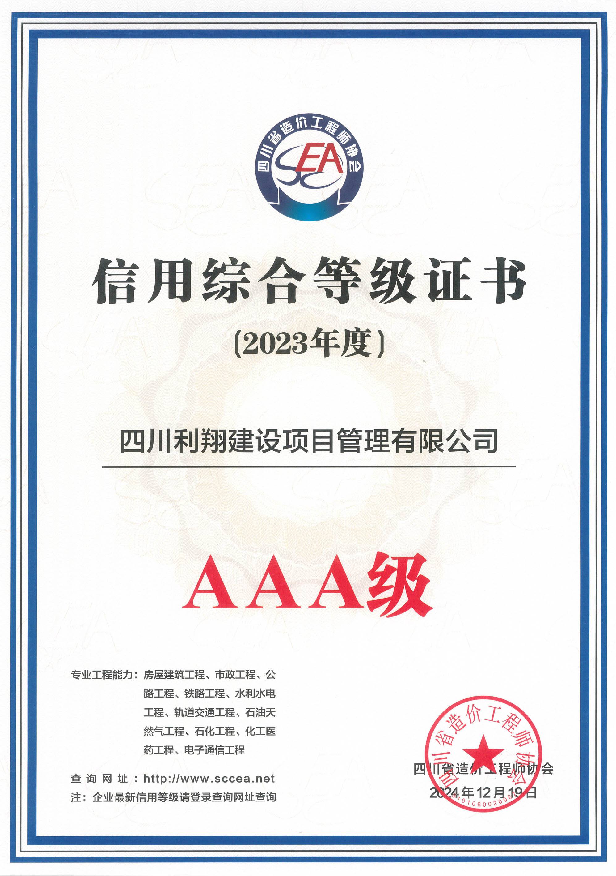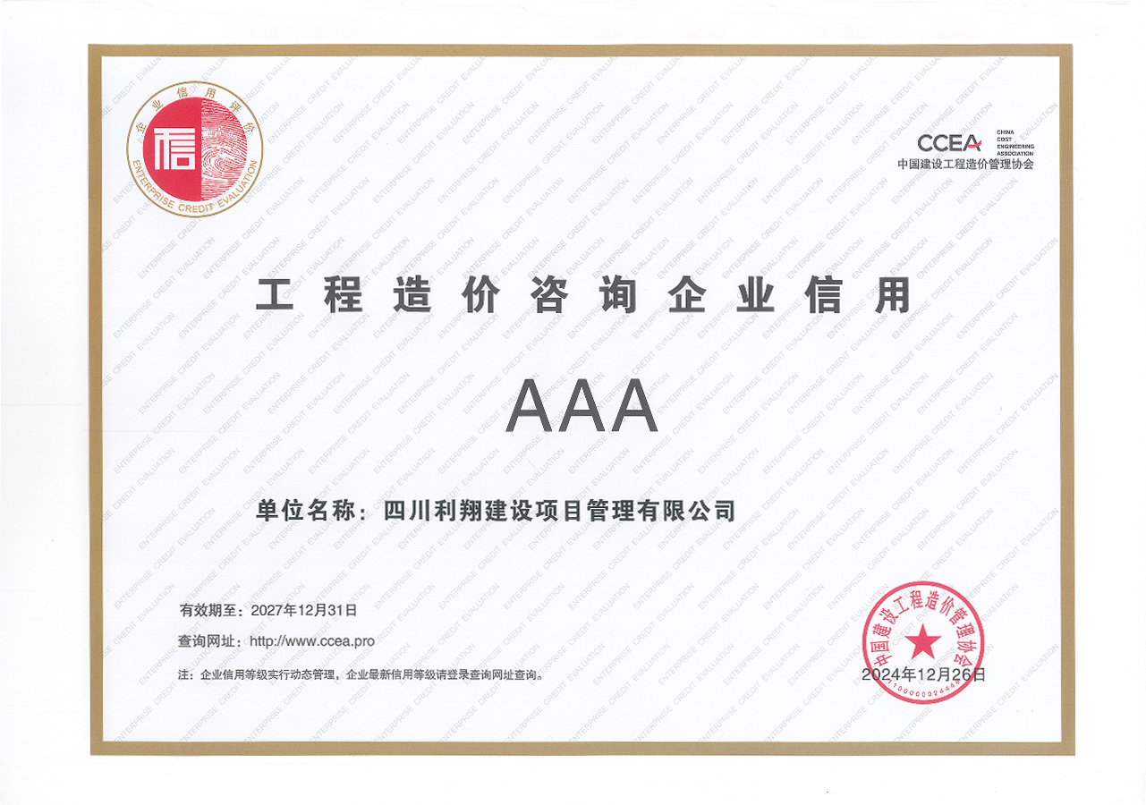 利翔咨询自创立以来,始终秉承专业高效、攻坚克难、创新超越的宗旨,构建了一支由注册造价师、注册监理工程师、注册咨询师、注册建造师、注册会计师等组成的严谨、科学、专业、专注的咨询团队和专业全面、经验丰富的专家团队。业务领域遍布10余个省、市自治区,涵盖了全过程工程咨询、工程咨询、工程造价咨询、招标代理、工程监理、BIM咨询、新基建、司法鉴定、专项债券咨询、财务决算咨询等多元化类型,先后获得各咨询类企业资质,并通过了多个国家行业标准化管理体系认证,建立了完善的企业标准,并获得多项著作权认证,连续多年获得企业能力和综合信用AAA级企业、省级优秀工程造价咨询企业、最具成长性工程造价咨询企业、守合同重信用企业。现系四川省造价工程师协会副监事长单位,成都市工程造价协会副会长单位、成都市评审协会副会长单位、四川同心慈善基金会副理事长单位、中国建筑节能协会BIM专业委员会会员单位、成都市企业诚信促进会会员单位。